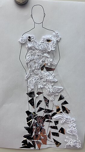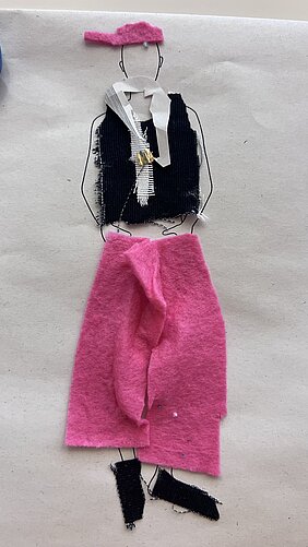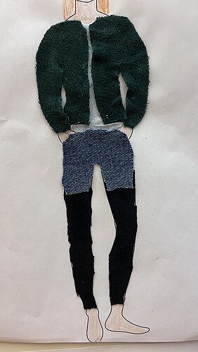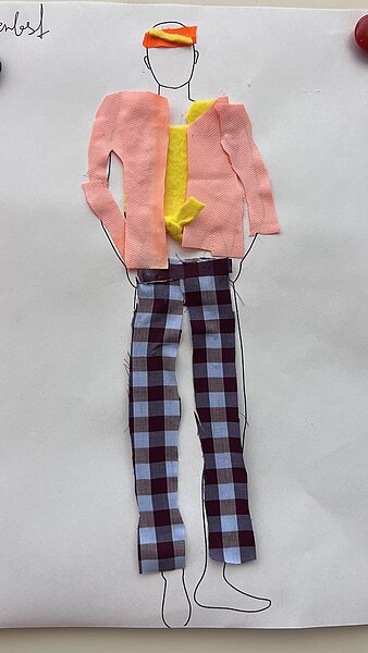 Fächerübergreifend haben sich die Schüler:innen dann selbst als Designer versucht und konnten dabei auf die unterschiedlichsten Materialien zurückgreifen: Rettungsdecke, Pappteller, Kühltüten, Verbandsmaterial, Jersey, Funktionsstoffe, Einkaufstüten … Der Materialtisch war prall gefüllt!